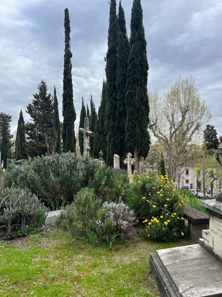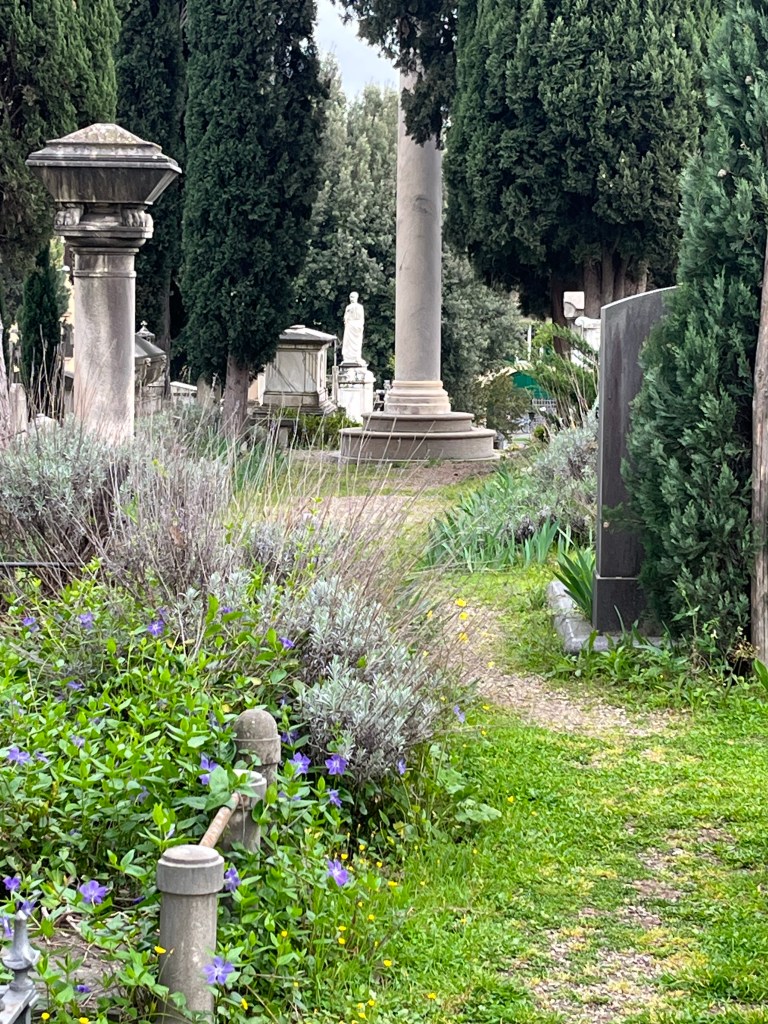 From my somewhat unconventional perspective, the English Cemetery stands out as one of the most captivating gardens of Florence. I doubt many places contain this special mix of elements (as we say in the world of landscape architecture). Towering, majestic cypress trees, delicate wildflower meadow, and dramatic tombstone sculptures. All combined! It might not have the size or grandeur of the Boboli Garden or the Iris Gardens. But its every bit as distinctive, only more.